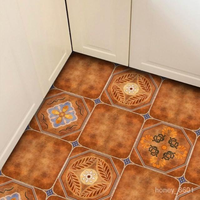 地貼 PVC地板 廚房地面貼紙 防水防火耐磨 自帶背膠 自粘地板貼 客廳陽臺瓷磚貼 地板翻新防滑複古美式貼