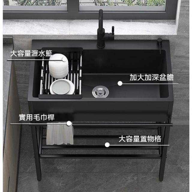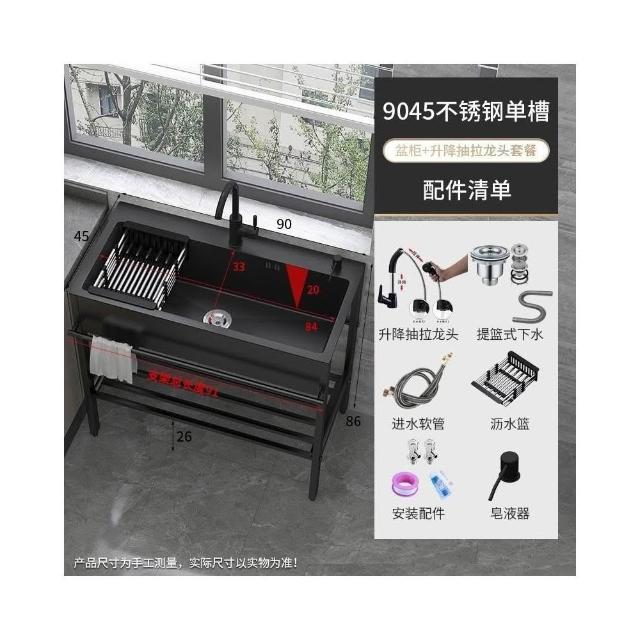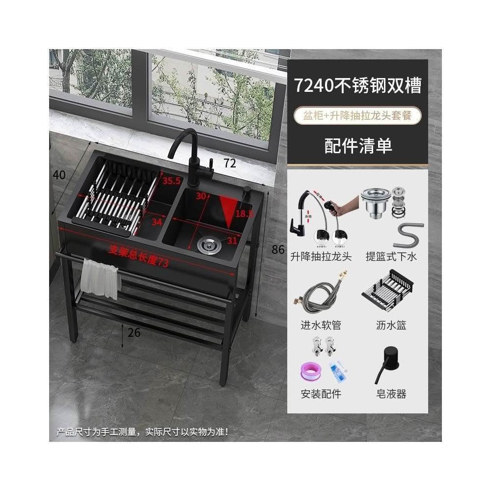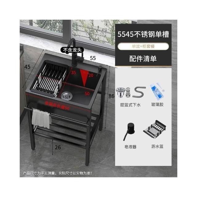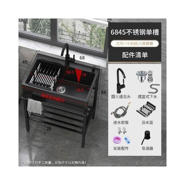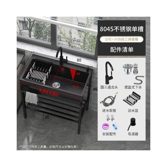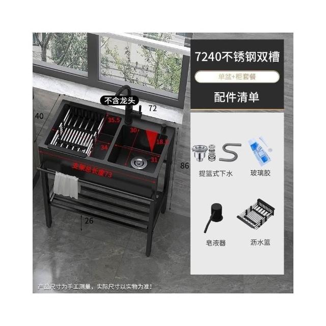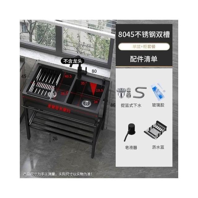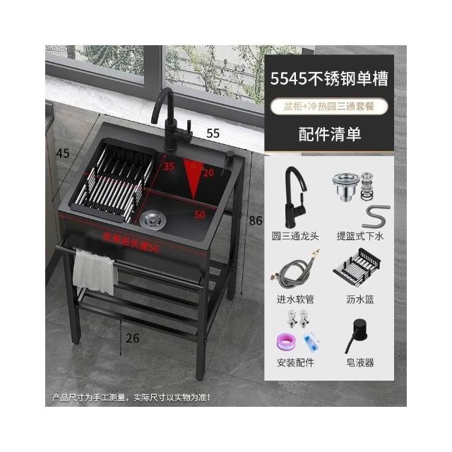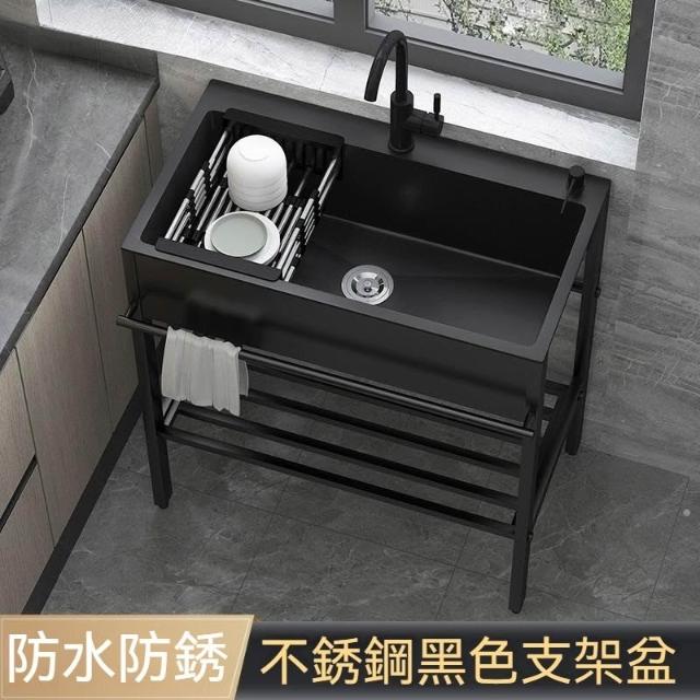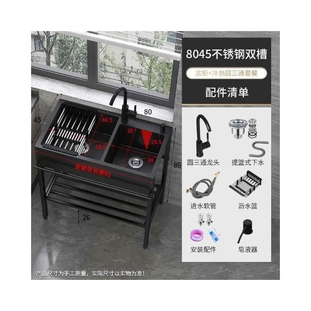 家用多功能落地式一體黑色簡易浴室廚房不鏽鋼洗手槽 浴室廚房洗手臺 廚房雙槽洗菜盆 大單槽洗碗池 流理台