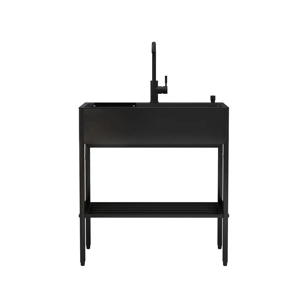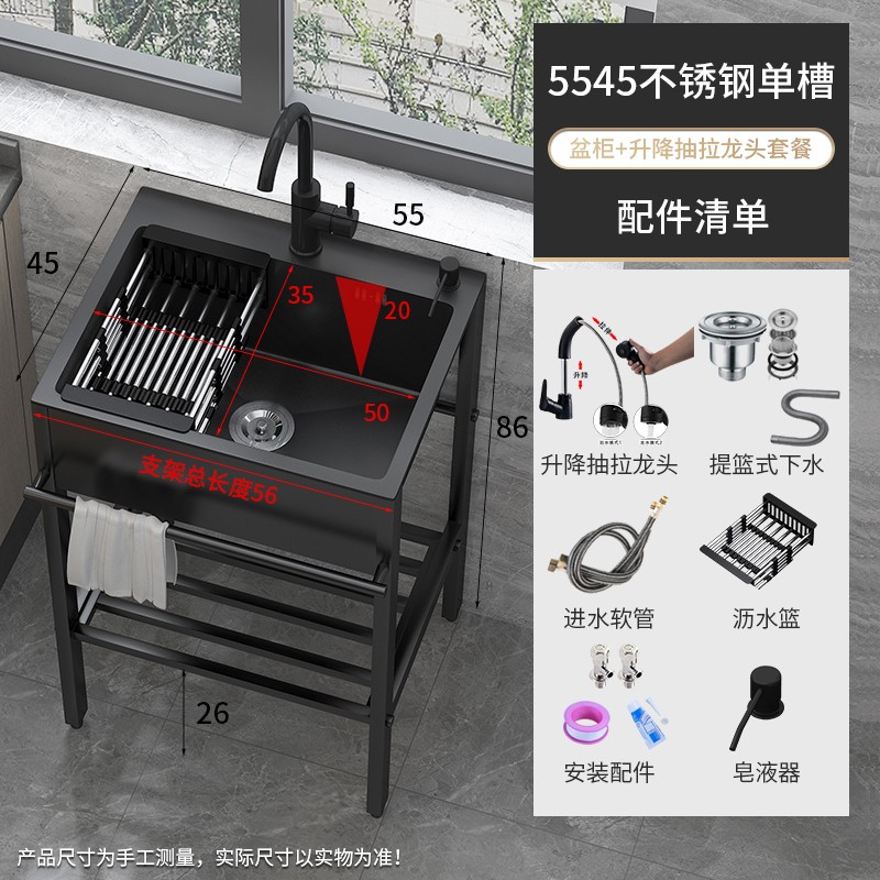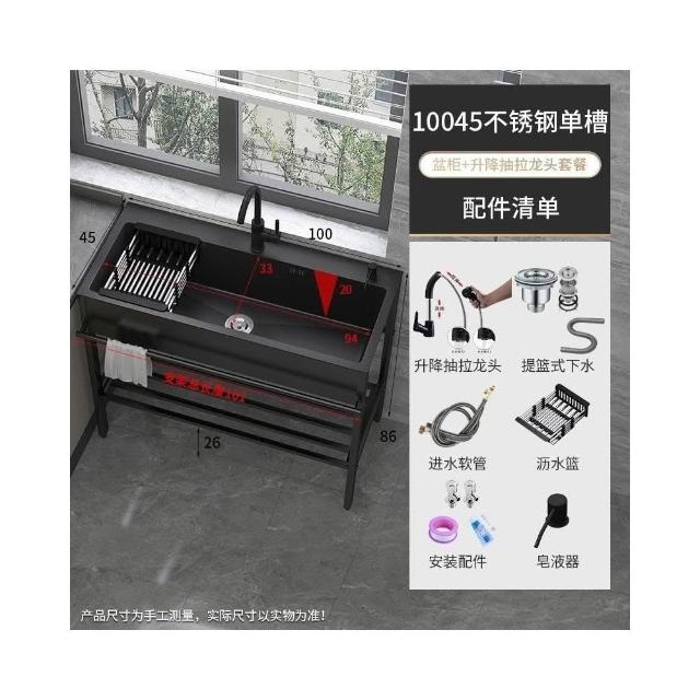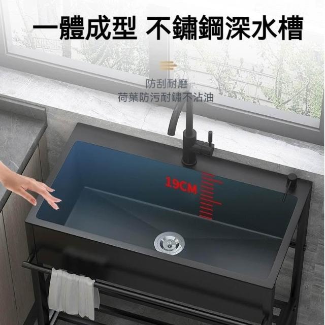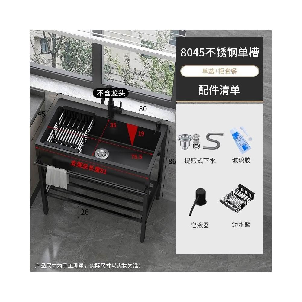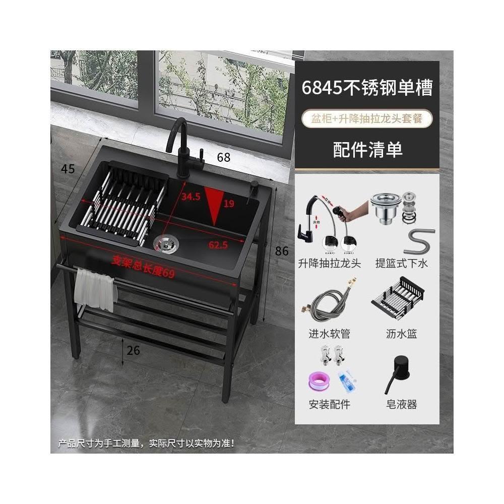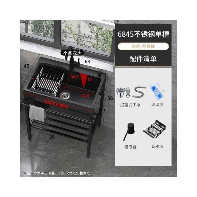 家用多功能落地式一體黑色簡易浴室廚房不鏽鋼洗手槽 浴室廚房洗手臺 廚房雙槽洗菜盆 大單槽洗碗池 流理台
