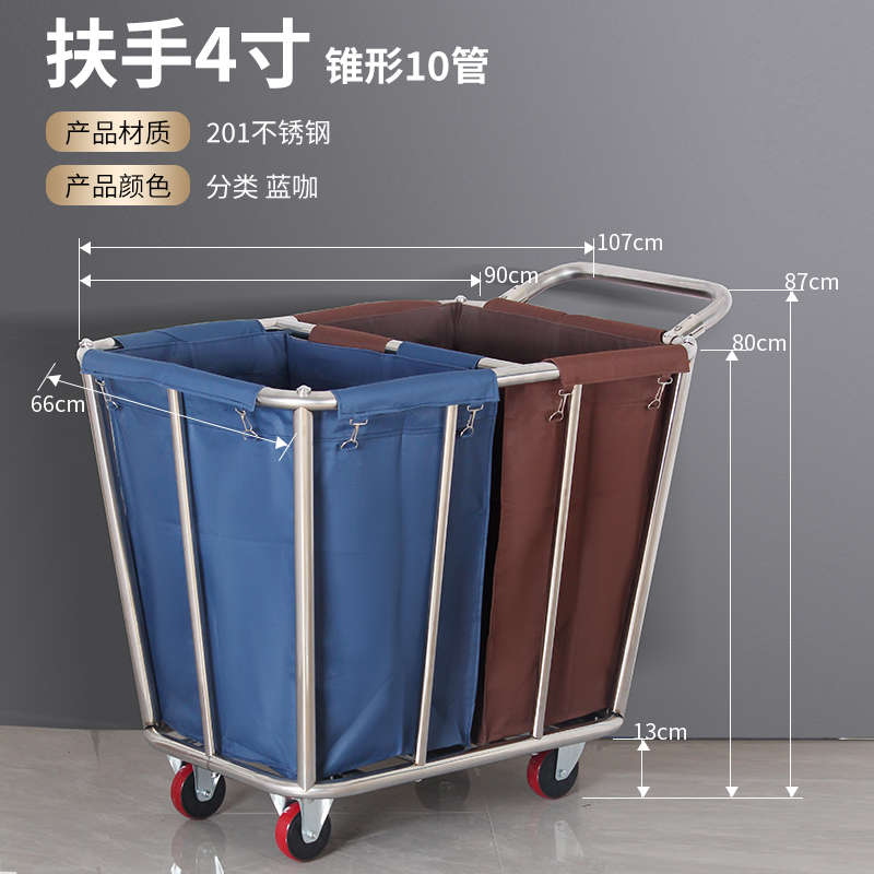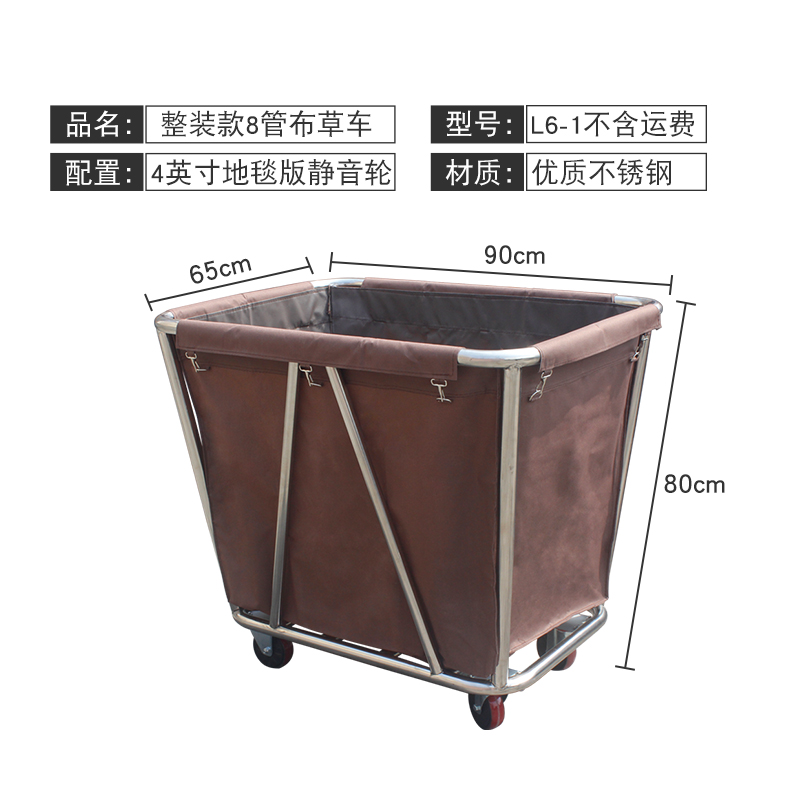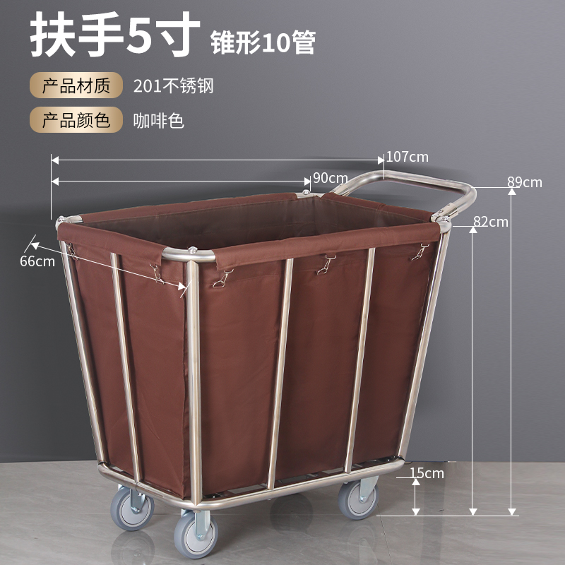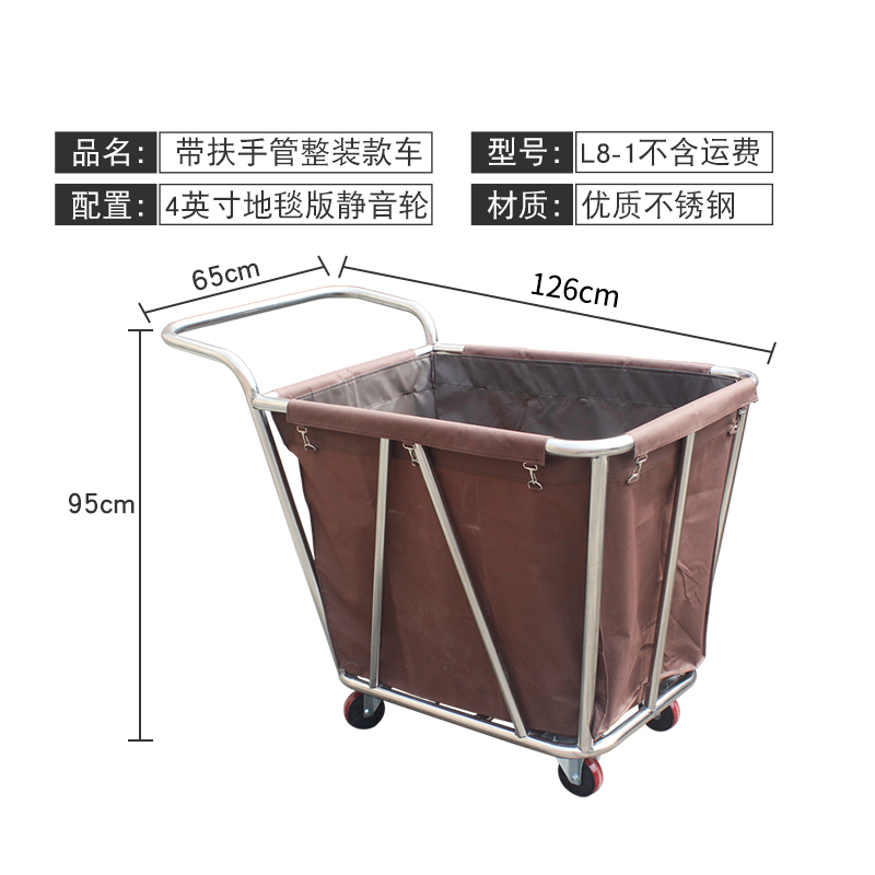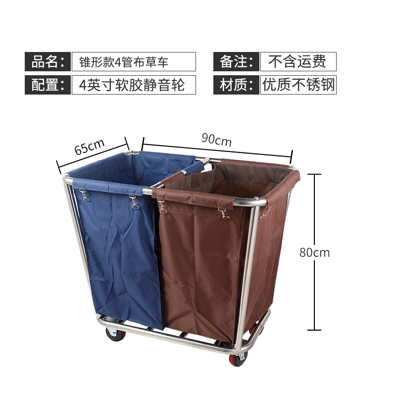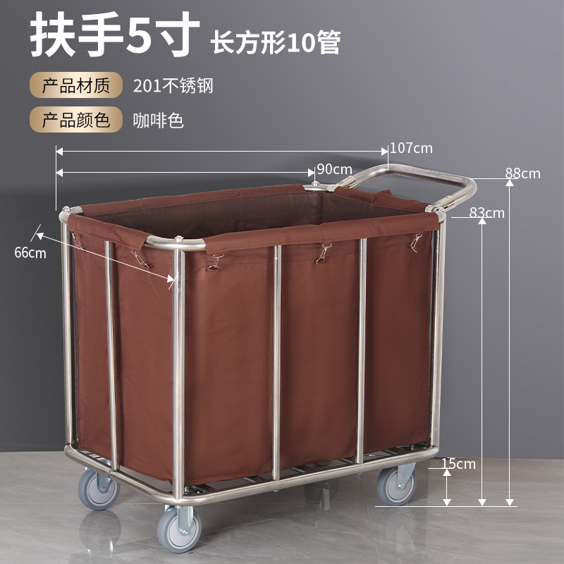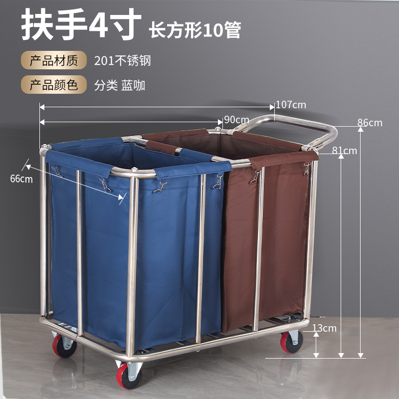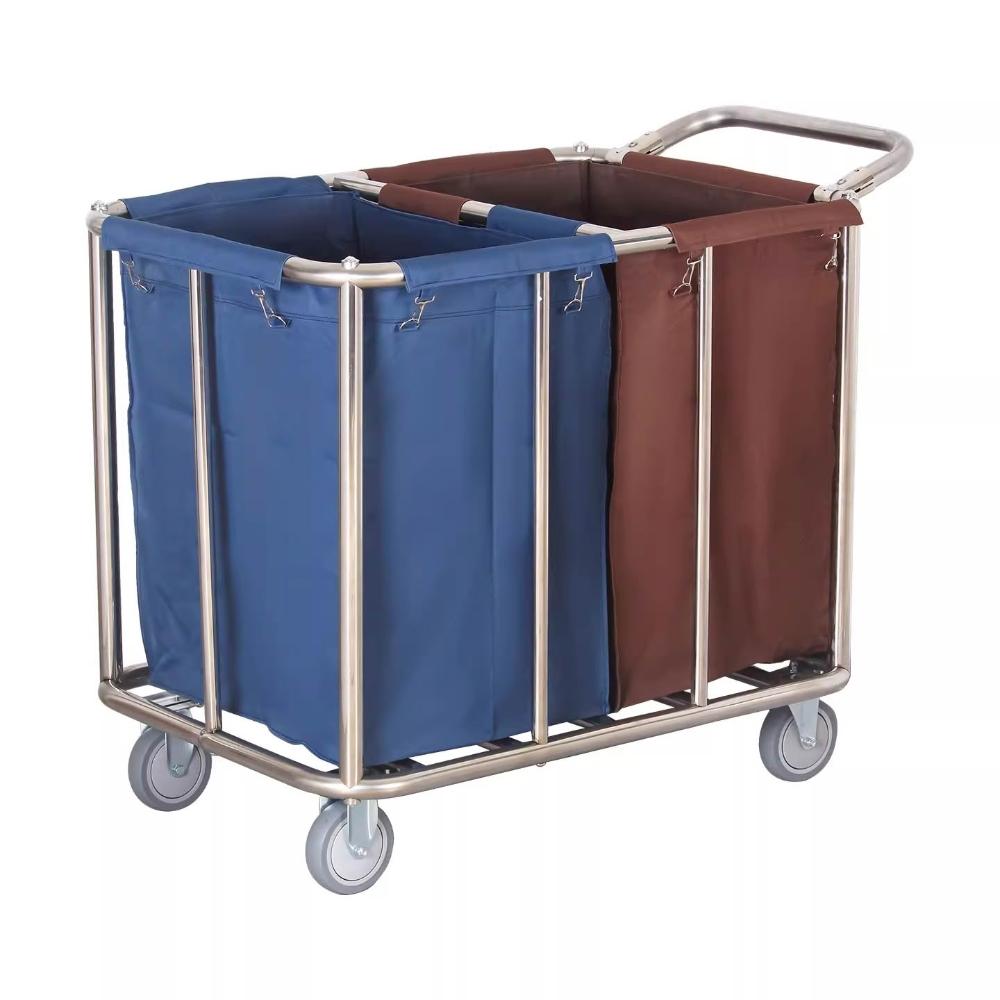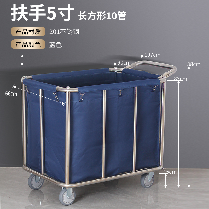 酒店布草車 客房服務車 加厚不銹鋼帶扶手洗衣房收集臟布草回收推車