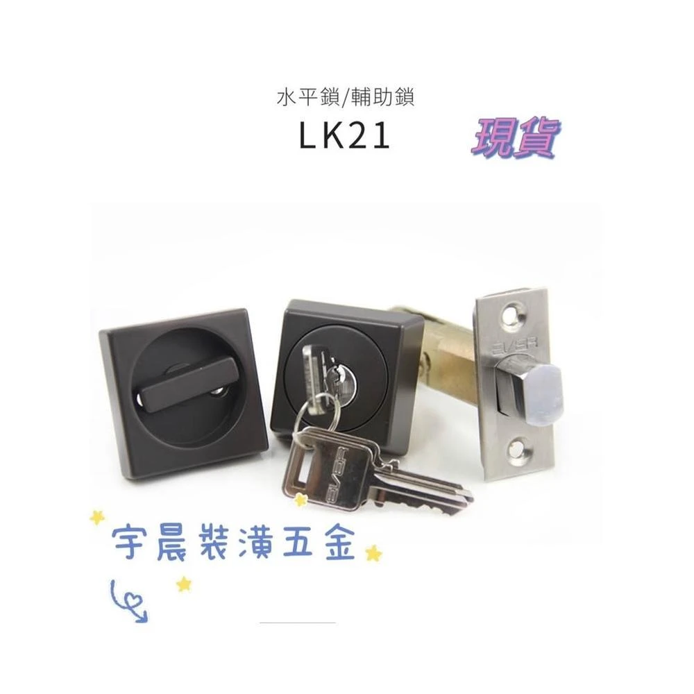 【宇晨裝潢五金 現貨EVER LK21 輔助鎖 銀色/咖啡黑色 一般鑰匙 門鎖 日規 貫穿取孔35mm 鎖才距離60mm