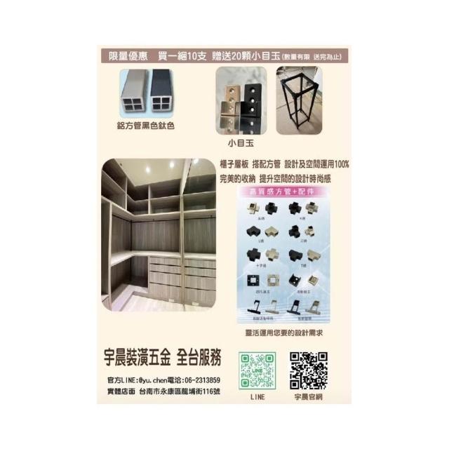 宇晨裝潢五金 方管配件 方形吊衣桿配件開放衣櫃 吊衣架 吊衣桿五金 目玉適合2*2公分的方管 附螺絲