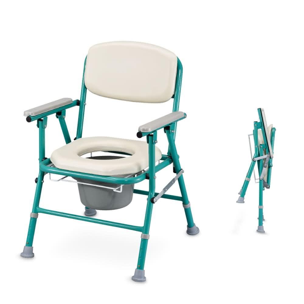 舒適收合型 青碧綠軟坐墊(#老人坐便器#移動馬桶#家用孕婦老人#床邊臥室便盆#成人室內座便器椅)