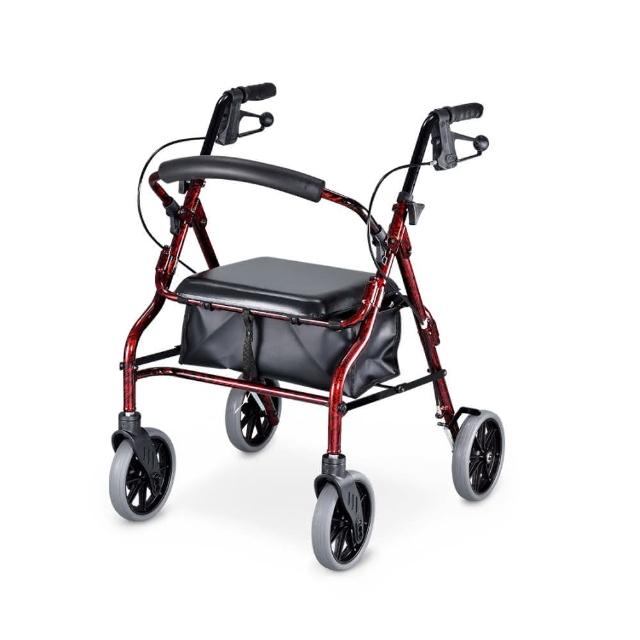 收合式經典款 煙火紅(#拐棍老人四腳椅凳#多功能拐杖椅#骨折助行器附輪#帶座老人學步車)