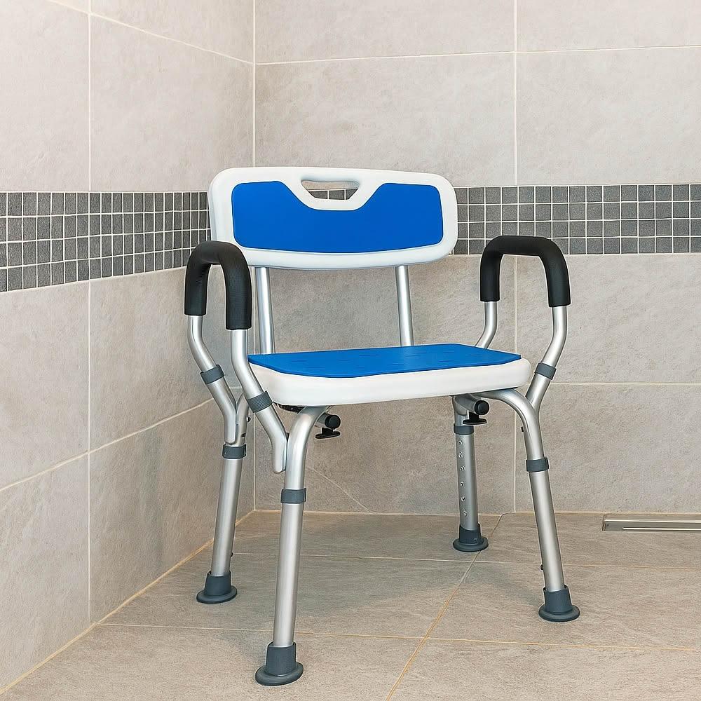銀髮首選升級加厚藍色扶手洗澡椅|老人浴室用|無障礙安全座椅藍色洗澡椅、浴室助行椅、防滑安全椅、老年人沐浴椅、無障礙座