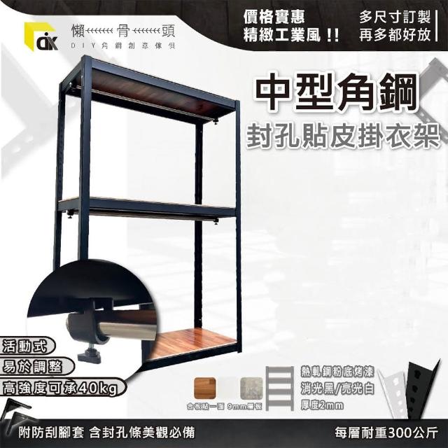 三層免螺絲角鋼衣架 衣服收納架 吊衣架 木板貼皮吊衣架 6.5*2*6高尺(角鋼層架/置物架/角鋼/客製化/衣架)
