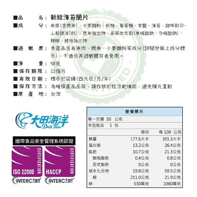 大田海洋新妝精美 – 鱈魚海苔脆片 60g