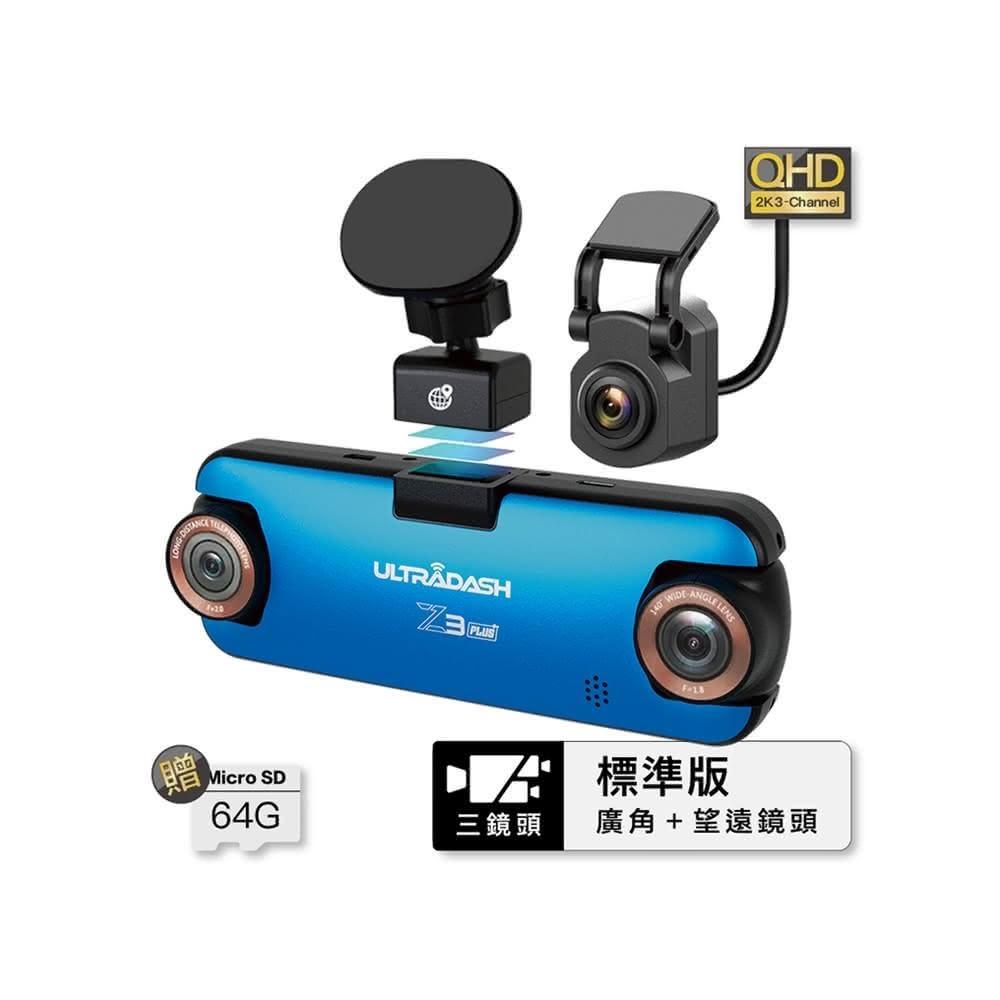 UltraDashZ3+雙鏡頭高畫質行車記錄器_標準版 望遠+廣角_後鏡頭綑綁組_送64GB記憶卡_WIFI_GPS_Cansonic