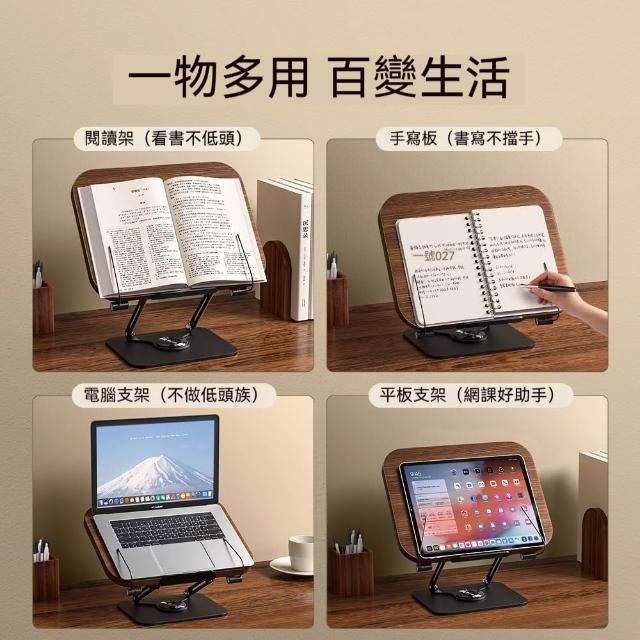 📝台灣現貨📝360°旋轉可升降閱讀支架 旋轉閱讀書架 看書架 閱讀架 看書架 黑胡桃木 實木書架 平板夾