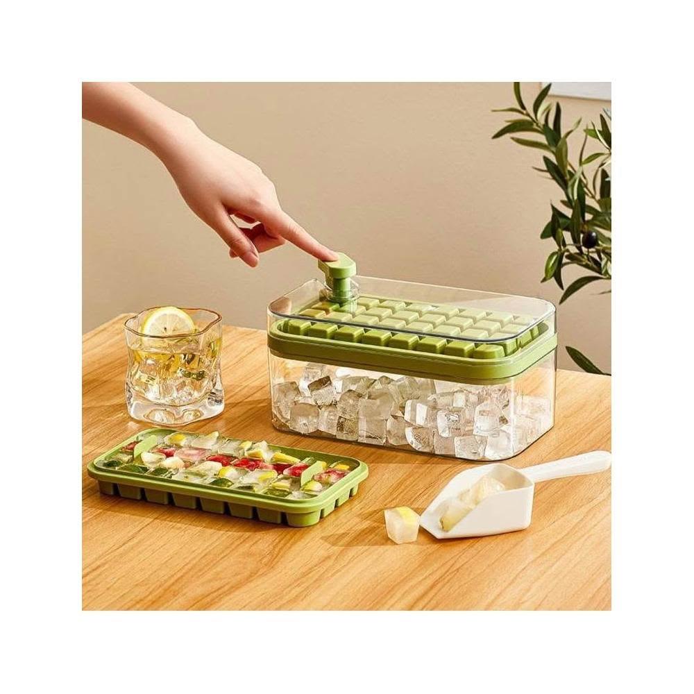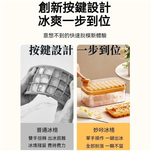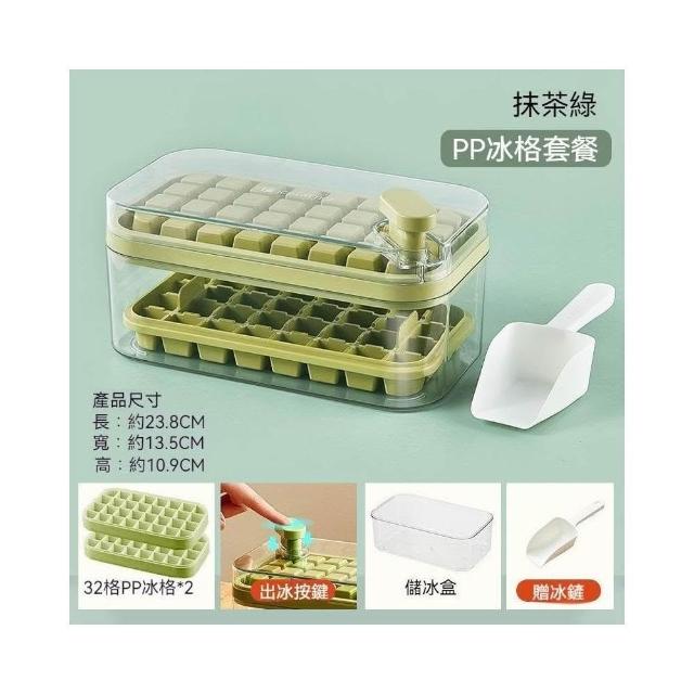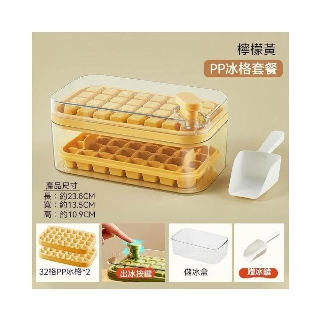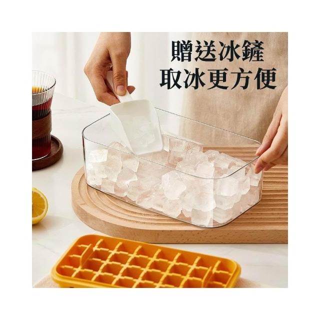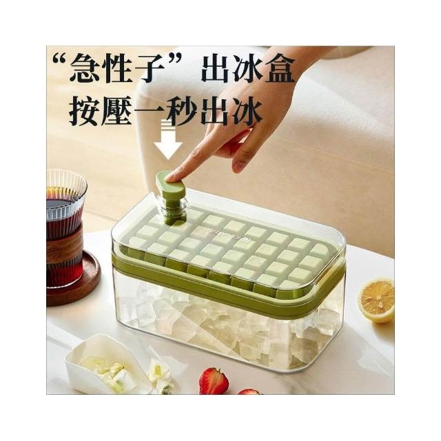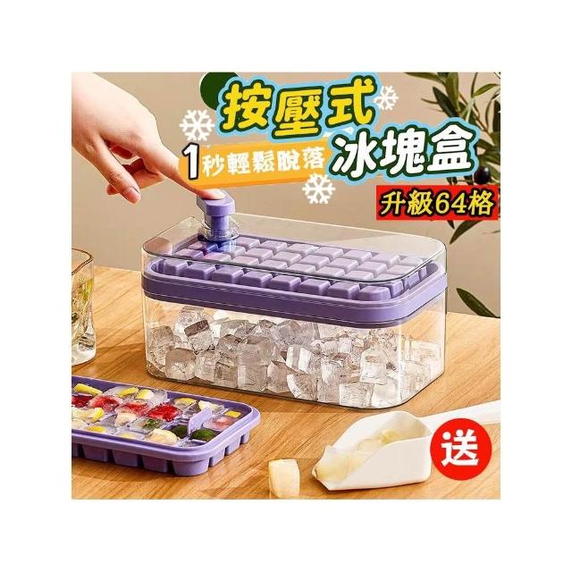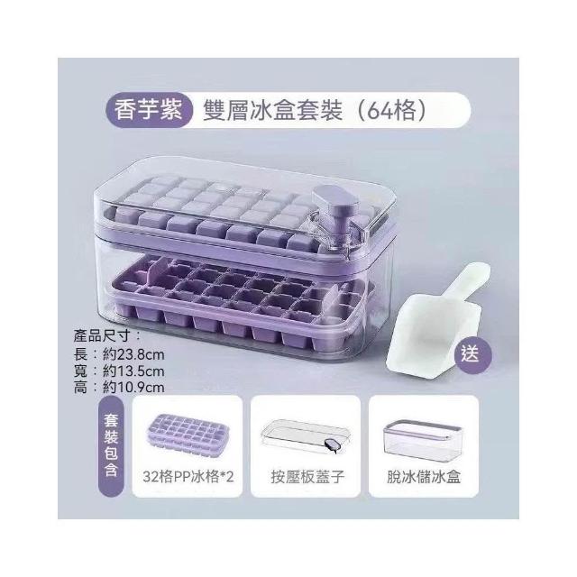 雙層製冰盒 秒脫冰 64格製冰盒 附冰鏟 儲冰盒 大容量 食用矽膠材質 按壓式製冰盒 冰塊模具 一秒脫模 製冰模具