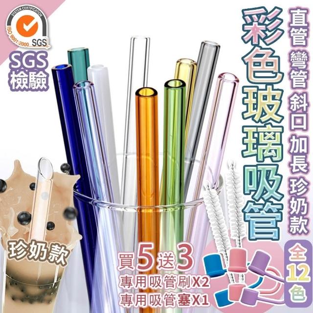彩色玻璃吸管【SGS認證/買5送3】耐熱玻璃 粗吸管 珍奶吸管 細吸管 斜口吸管 環保吸管 波霸吸管 玻璃管 彩色吸管