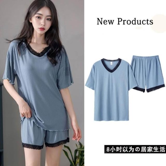 LE FLIRT 舒適休閒薄款莫代爾冰絲睡衣 女短袖短褲睡衣 居家服套裝簡約 女生睡衣 家居服 日系睡衣 韓系睡衣
