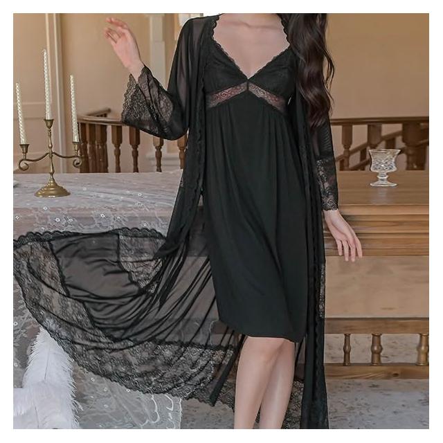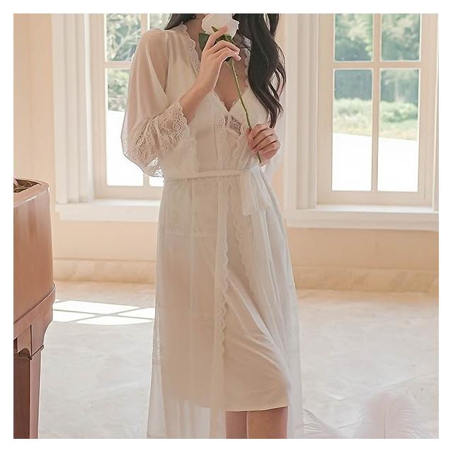 LE FLIRT 莫代爾 內睡衣 蕾絲睡衣 連身睡衣 性感睡衣女 蕾絲甜美 長款吊帶 睡裙睡袍 兩件套 帶胸墊 居家服