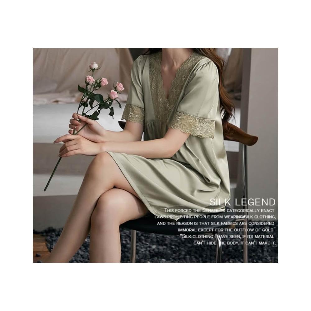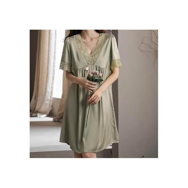 LE FLIRT 親膚柔軟 輕薄 舒適日系簡約女睡衣 大花邊睡裙中長冰絲短袖睡衣 大尺碼睡裙 女居家服 韓系睡衣 夏睡衣