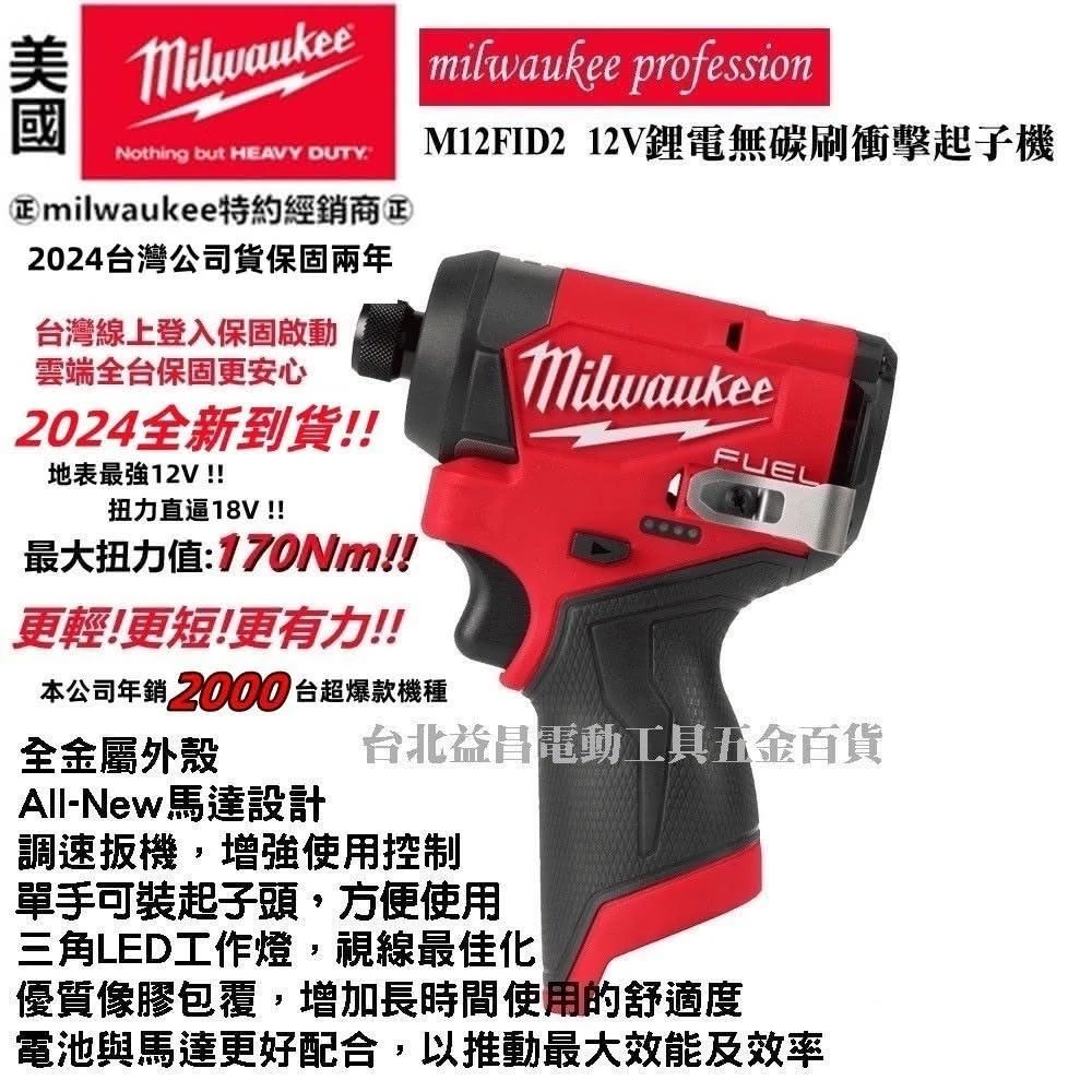 Milwaukee 美沃奇台北益昌公司貨 美沃奇 Milwaukee M12FID2 鋰電 無刷 起子機 2.5+5.0版含箱