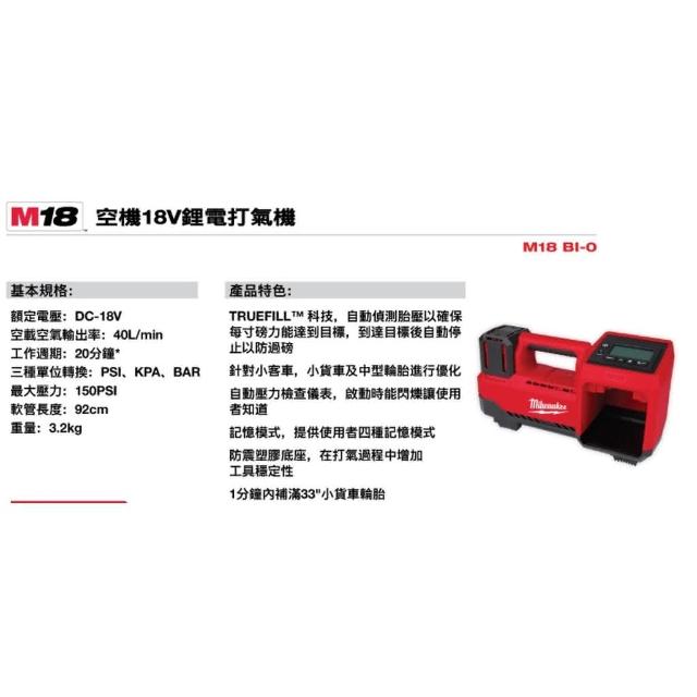 Milwaukee 美沃奇台北益昌 美沃奇 米沃奇 18V 輕巧 打氣機 M18BI-0 M18 BI 貨車 卡車 充氣 打氣 救援 BI