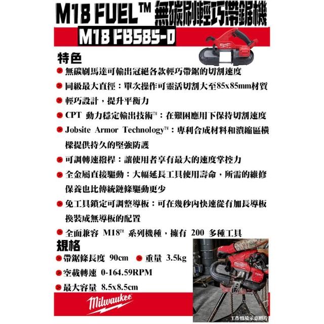 Milwaukee 美沃奇台北益昌 美沃奇 米沃奇 18V 鋰電 無碳刷 輕型 帶鋸機 M18 FBS85 M18FBS85 原廠公司貨 單5.0電池版
