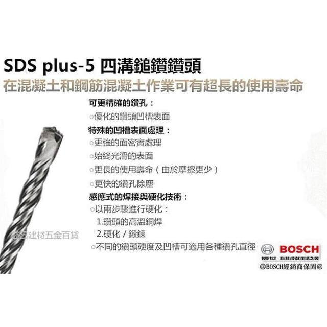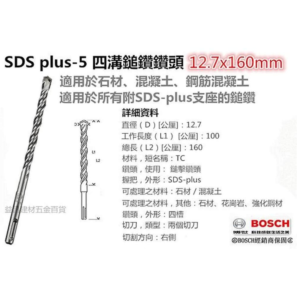 BOSCH 博世台北益昌 德國BOSCH SDS plus-5 四溝鎚鑽鑽頭12.7x160mm 適用所有附SDS-plus支座的鎚鑽