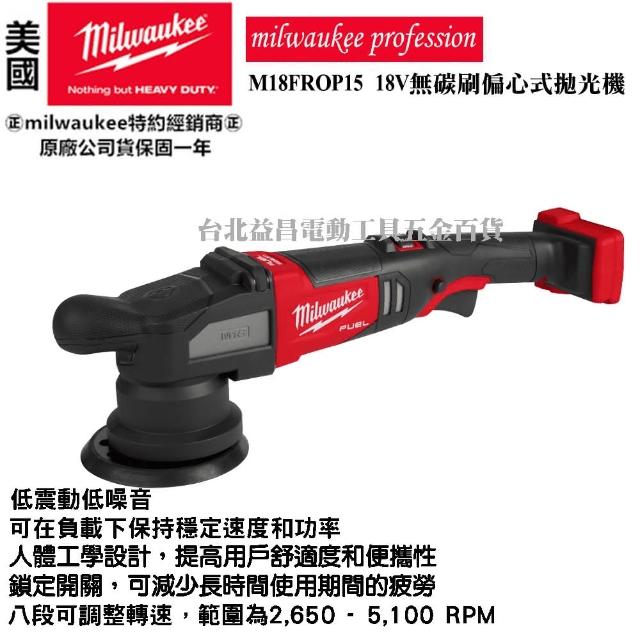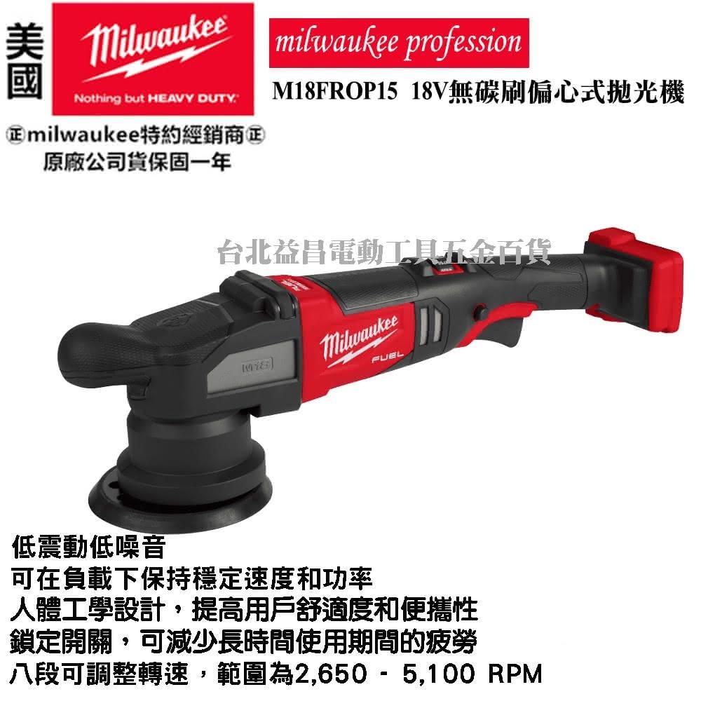 Milwaukee 美沃奇台北益昌 美沃奇 18V 無碳刷偏心式拋光機 打蠟 拋光 15mm 汽車美容 M18FROP15 FROP15 單5.0版