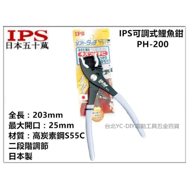 台北益昌 日本 IPS 五十嵐 可調式鯉魚鉗 PH-200 水管鉗 樹脂護套鉗口 可拆換 特殊鉗 鉗口膠套保護