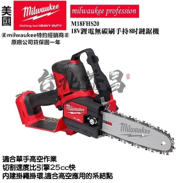 Milwaukee 美沃奇台北益昌 原廠公司貨 美沃奇 米沃奇 18V 鋰電 無碳刷 8吋 手持 鏈鋸機 M18 FHS20 單主機提袋版