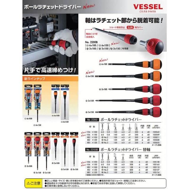 台北益昌 VESSEL 棘輪 螺絲起子 2200 絕緣 電工起子 36齒 棘輪式 起子 二用 可拆式 (+2×100)