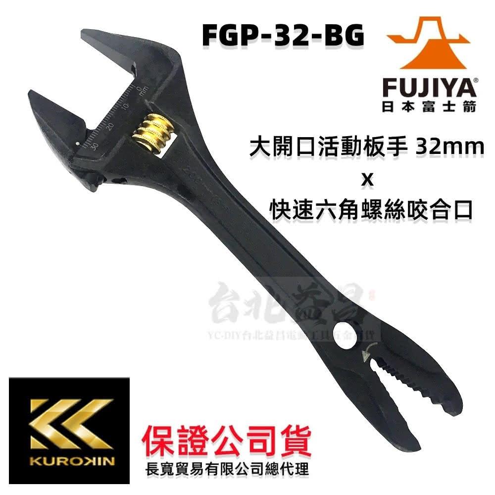 Fujiya 富士箭台北益昌 FUJIYA 富士箭 黑金系列 大開口活動板手 32mm x 快速六角螺絲咬合口 FGP-32-BG