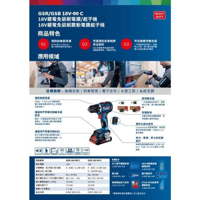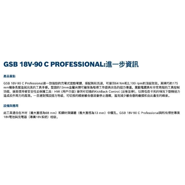 BOSCH 博世台北益昌 德國 BOSCH 博世 GSB 18V-90C 無刷 震動 電鑽 起子機 GSB18V-90 C 13mm 單2.0版