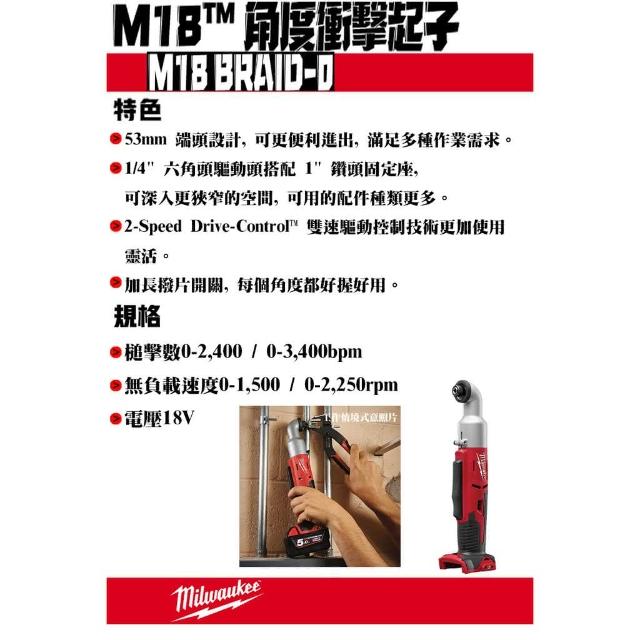 Milwaukee 美沃奇台北益昌 美沃奇 米沃奇 18V 鋰電 直角 衝擊 起子機 M18 BRAID-0 原廠公司貨