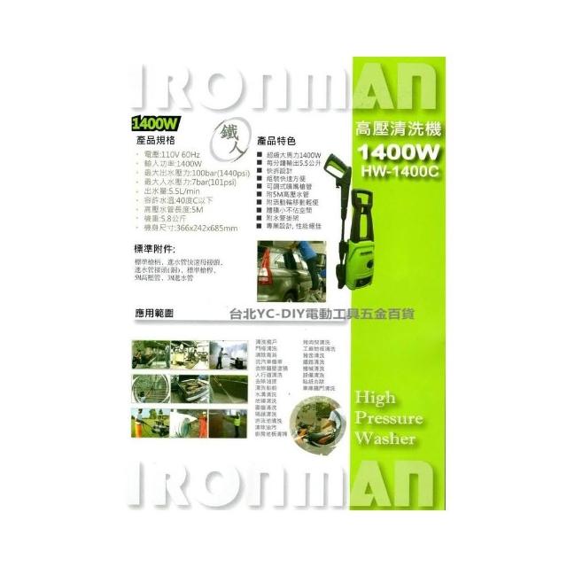 台北益昌100bar 鐵人牌 IRONMAN 1400W (HW-1400C) 高壓 清洗機 洗車機