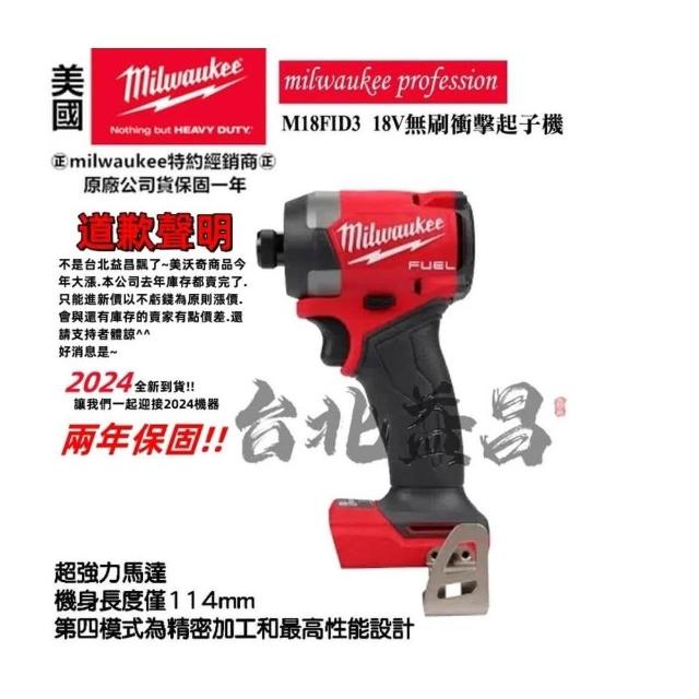 Milwaukee 美沃奇台北益昌 公司貨 米沃奇 美沃奇 M18 FID3 18V 無刷 衝擊 起子機 電鑽