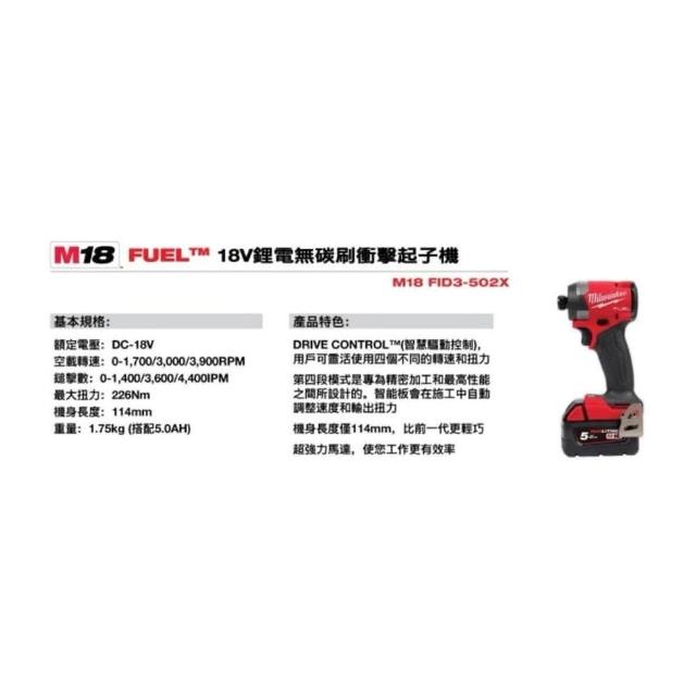 Milwaukee 美沃奇台北益昌 公司貨 米沃奇 美沃奇 M18 FID3 18V 無刷 衝擊 起子機 電鑽