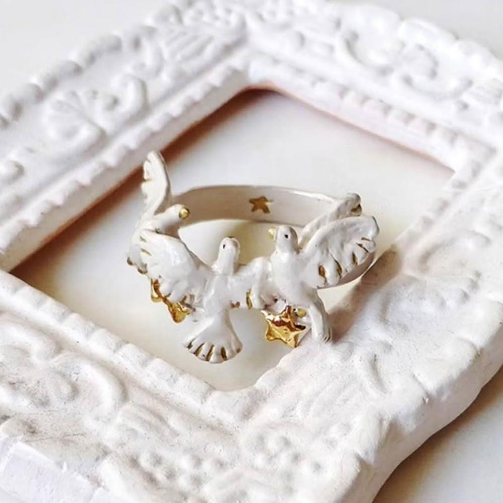Palnart poc官方正品 纖細氛圍星星白鴿群展翅飛翔 戒指 RN099
