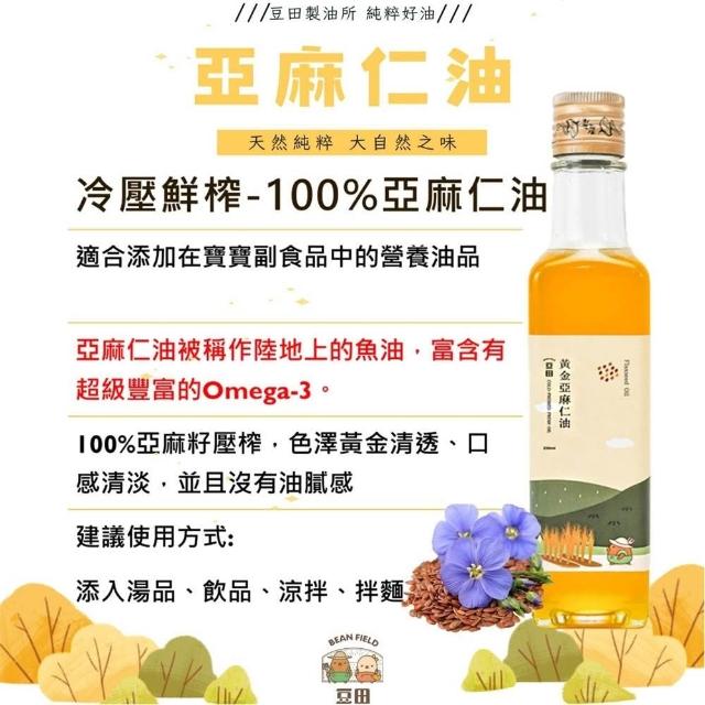豆田鮮榨油 黃金亞麻仁油 250ML(Omega3 冷壓鮮榨 新鮮現榨 植物魚油 素魚油 魚油)