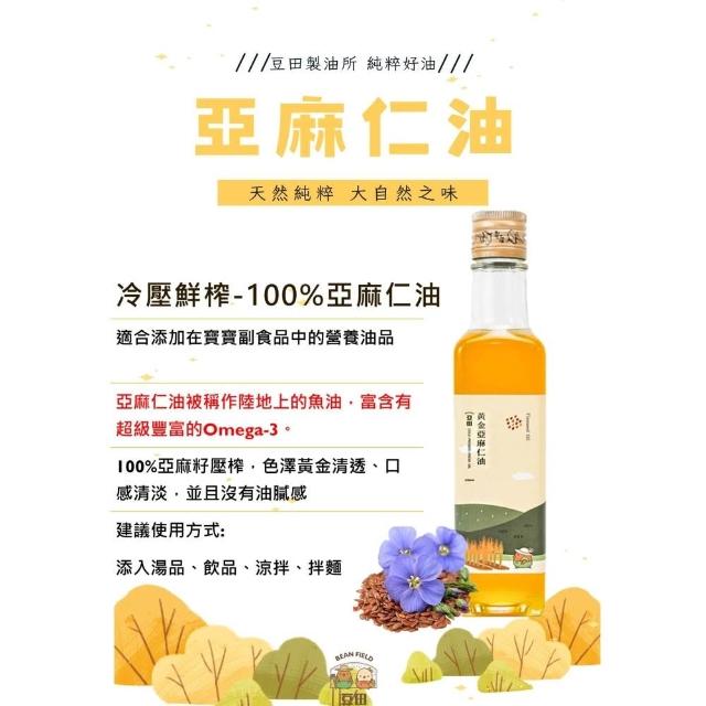 豆田鮮榨油 黃金亞麻仁油 冷壓初榨亞麻仁籽油 250ML Omega3 冷壓鮮榨 新鮮現榨 植物魚油 素魚油 魚油