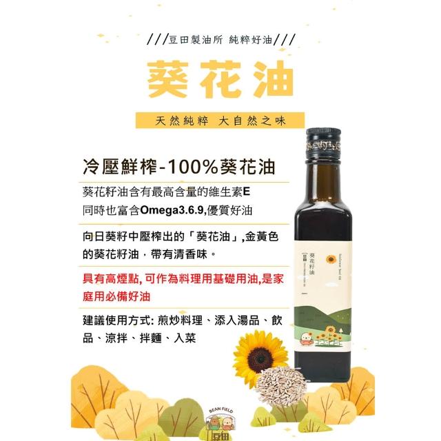 豆田鮮榨油 葵花籽油 葵花油 三入優惠組 250ML 冷壓鮮榨 新鮮現榨