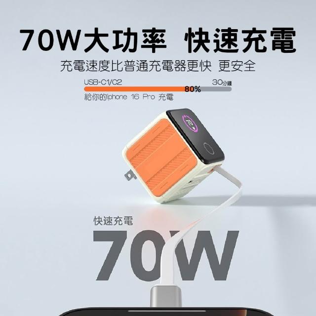 PD-137 70W自帶伸縮快充神器(彩屏顯示 自帶伸縮線 Type-C充電頭)