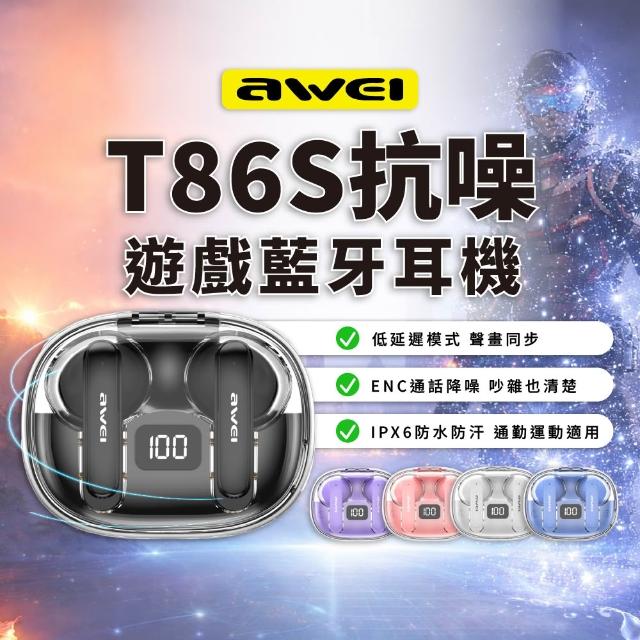 AWEI T86S TWS降噪遊戲真藍牙耳機 IPX6防水防汗 ( ENC抗噪 TWS耳機 通話抗噪 入耳式)