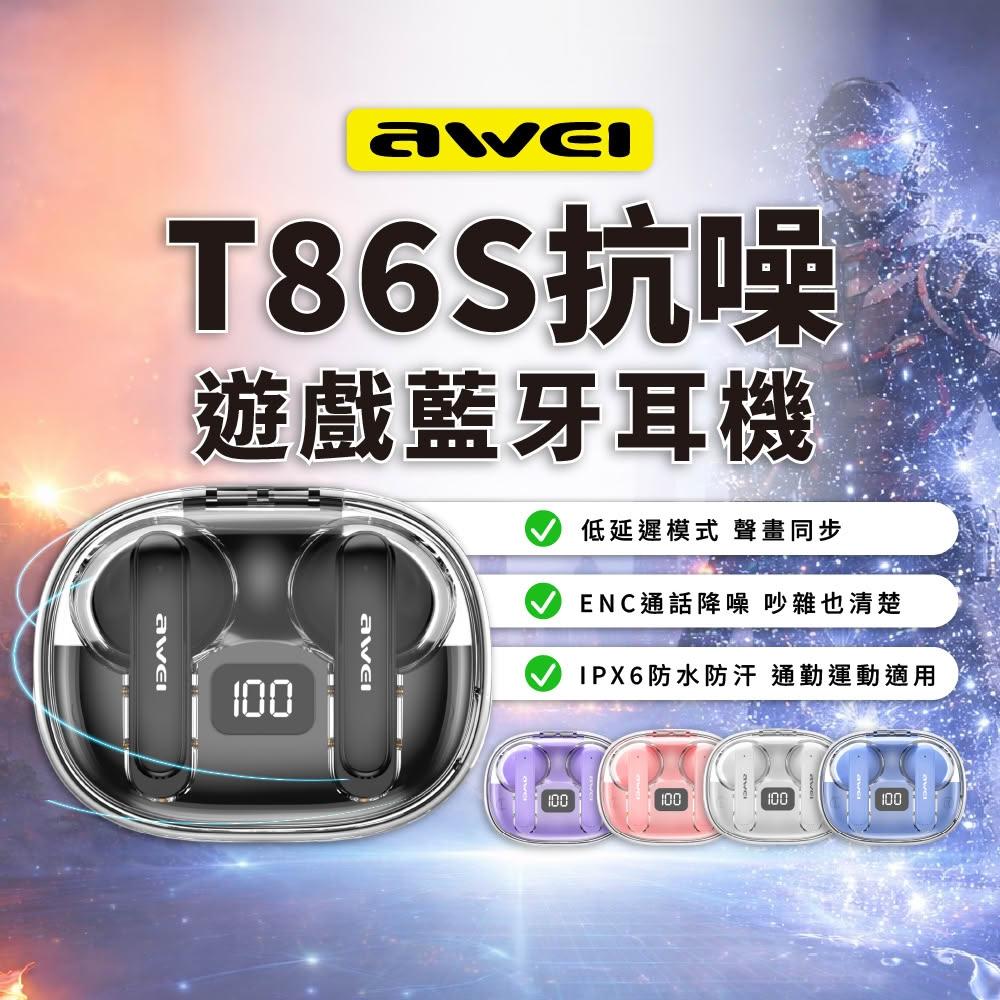 AWEI T86S TWS降噪遊戲真藍牙耳機 IPX6防水防汗 ( ENC抗噪 TWS耳機 通話抗噪 入耳式)