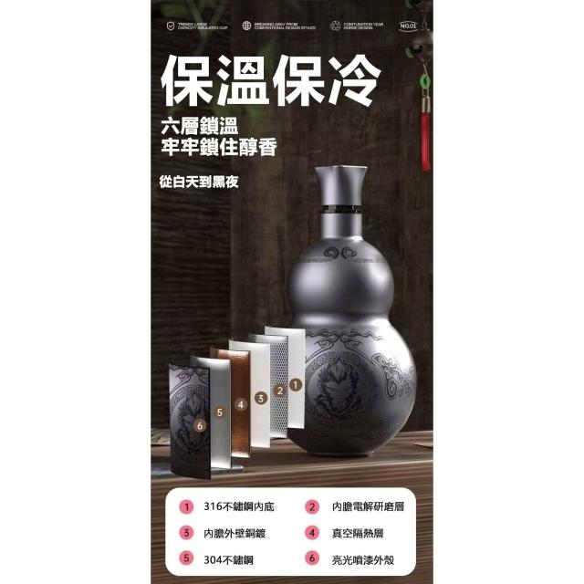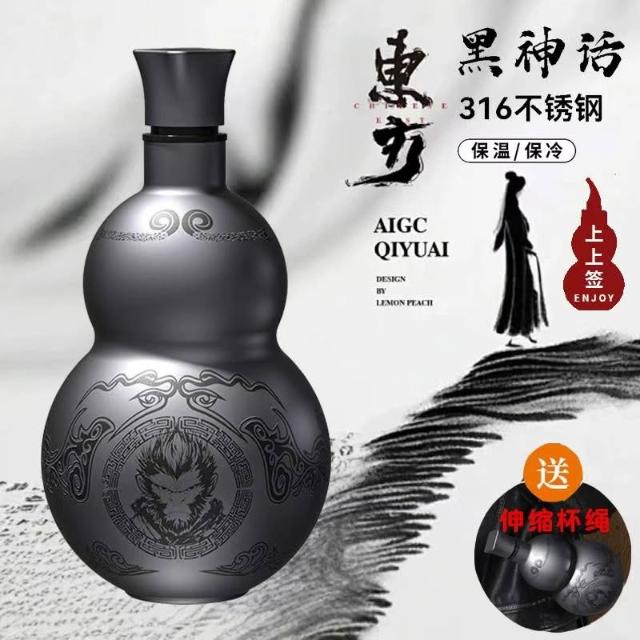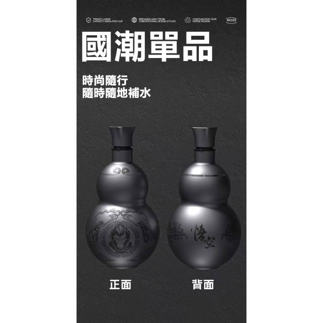 優品 葫蘆水杯 不鏽鋼保溫杯 500ML大容量 316不鏽鋼水壺 戶外便攜運動水壺 黑神話悟空