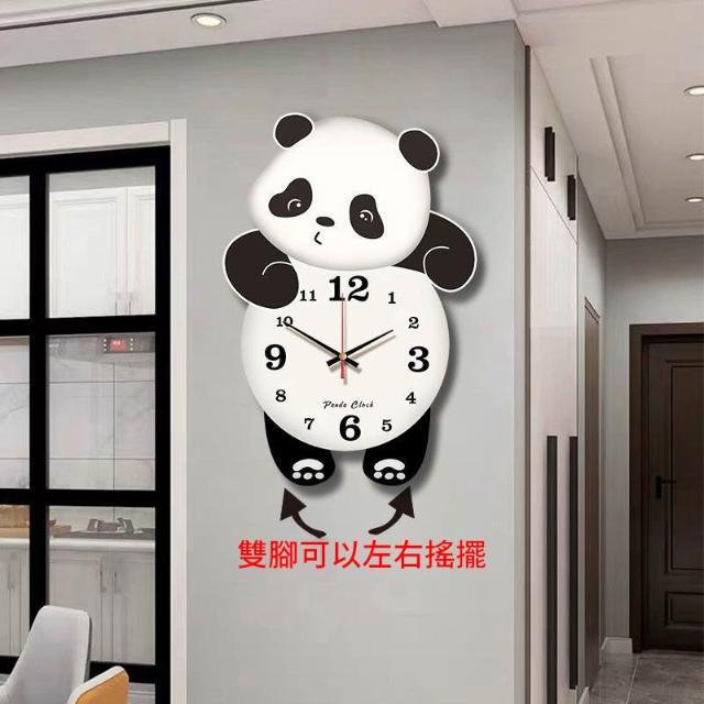 優品熊貓掛鐘 熊貓搖擺鐘 客廳掛墻時鐘 時尚創意時鐘 免打孔靜音掛鐘