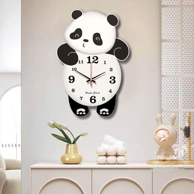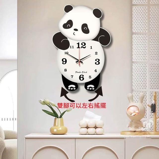 優品熊貓掛鐘 熊貓搖擺鐘 客廳掛墻時鐘 時尚創意時鐘 免打孔靜音掛鐘