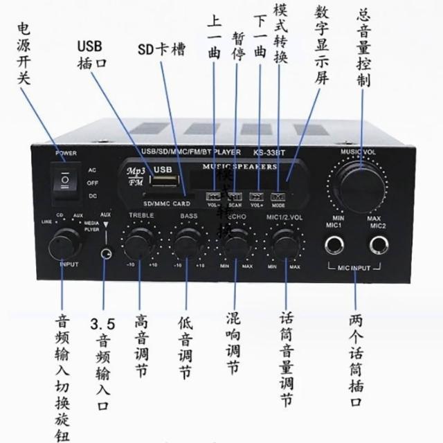 優品擴大機 立體聲擴大器 KS-33BT 升級款藍牙HIFI數字功放機 車載KTV 家用影音放大器