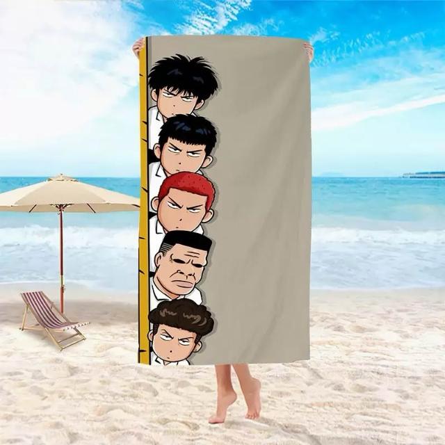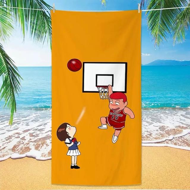 灌籃高手浴巾 超細纖維 浴巾 卡通浴巾 櫻木花道 毛巾海灘浴巾 成人洗澡巾 游泳 旅行便攜沙灘巾 玩水 海邊