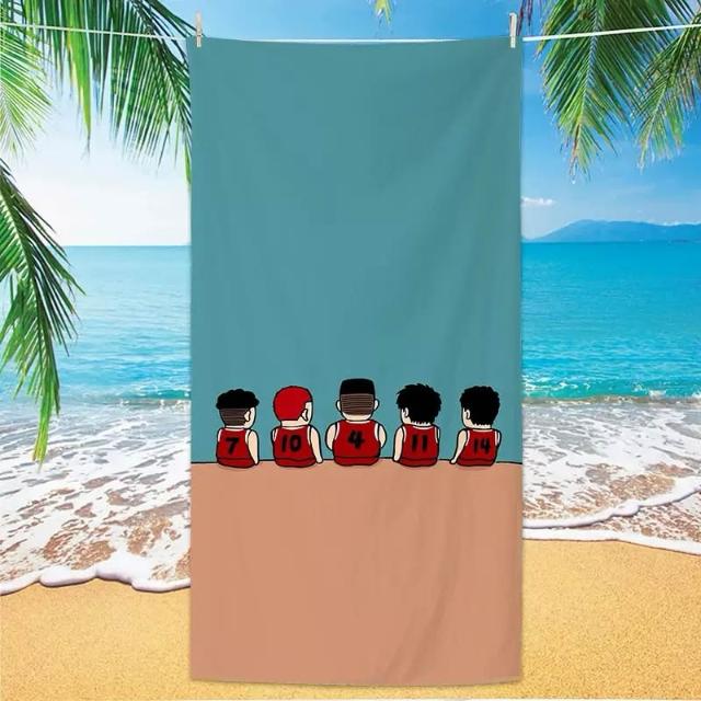 灌籃高手浴巾 超細纖維 浴巾 卡通浴巾 櫻木花道 毛巾海灘浴巾 成人洗澡巾 游泳 旅行便攜沙灘巾 玩水 海邊