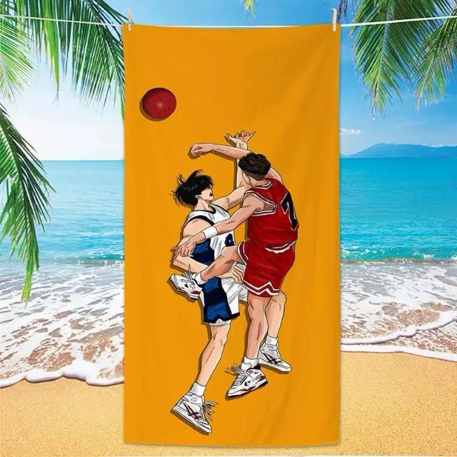 灌籃高手浴巾 超細纖維 浴巾 卡通浴巾 櫻木花道 毛巾海灘浴巾 成人洗澡巾 游泳 旅行便攜沙灘巾 玩水 海邊