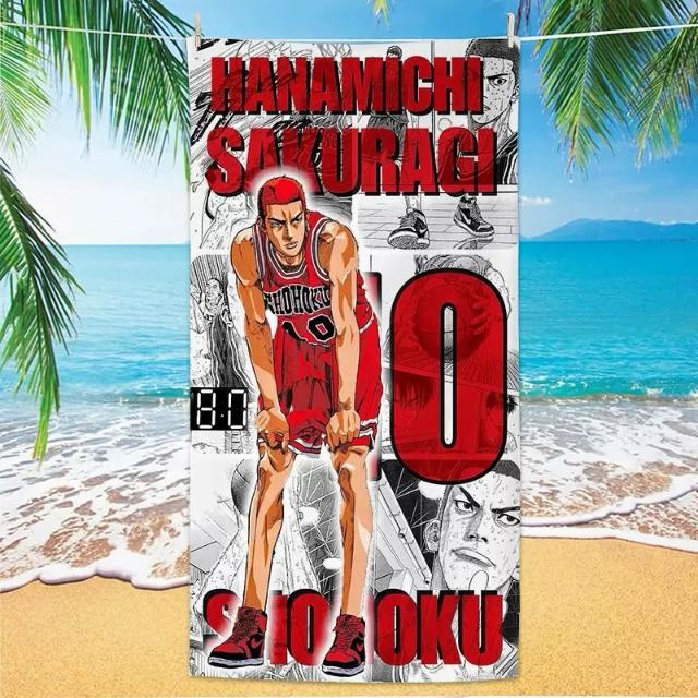 灌籃高手浴巾 超細纖維 浴巾 卡通浴巾 櫻木花道 毛巾海灘浴巾 成人洗澡巾 游泳 旅行便攜沙灘巾 玩水 海邊