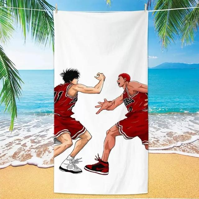 灌籃高手浴巾 超細纖維 浴巾 卡通浴巾 櫻木花道 毛巾海灘浴巾 成人洗澡巾 游泳 旅行便攜沙灘巾 玩水 海邊
