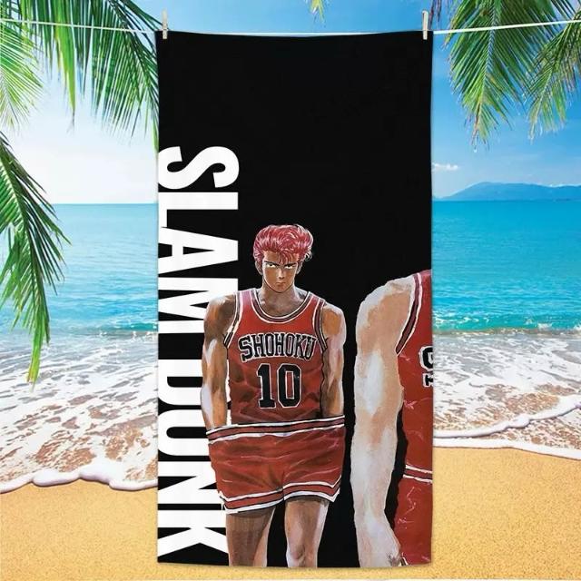 灌籃高手浴巾 超細纖維 浴巾 卡通浴巾 櫻木花道 毛巾海灘浴巾 成人洗澡巾 游泳 旅行便攜沙灘巾 玩水 海邊