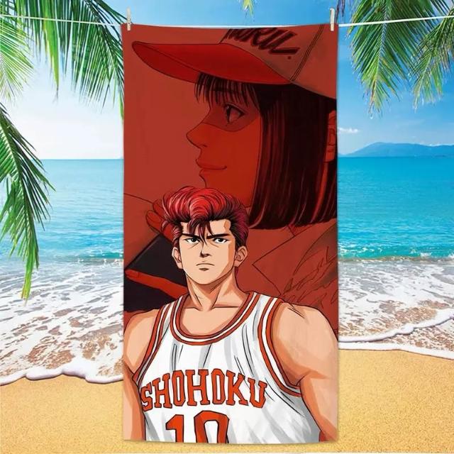 灌籃高手浴巾 超細纖維 浴巾 卡通浴巾 櫻木花道 毛巾海灘浴巾 成人洗澡巾 游泳 旅行便攜沙灘巾 玩水 海邊
